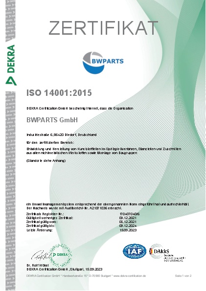 Die BWPARTS GmbH hat ein aktives Managementsystem im Einsatz welches die Bereiche Qualität, Umwelt, Energie, Sicherheit und Gesundheit bei der Arbeit und Informationssicherheit umfasst sowie neben unseren Mitarbeitern auch alle Zulieferanten zur aktiven Unterstützung und Erreichung unserer gemeinsamen Ziele darin berücksichtigt.