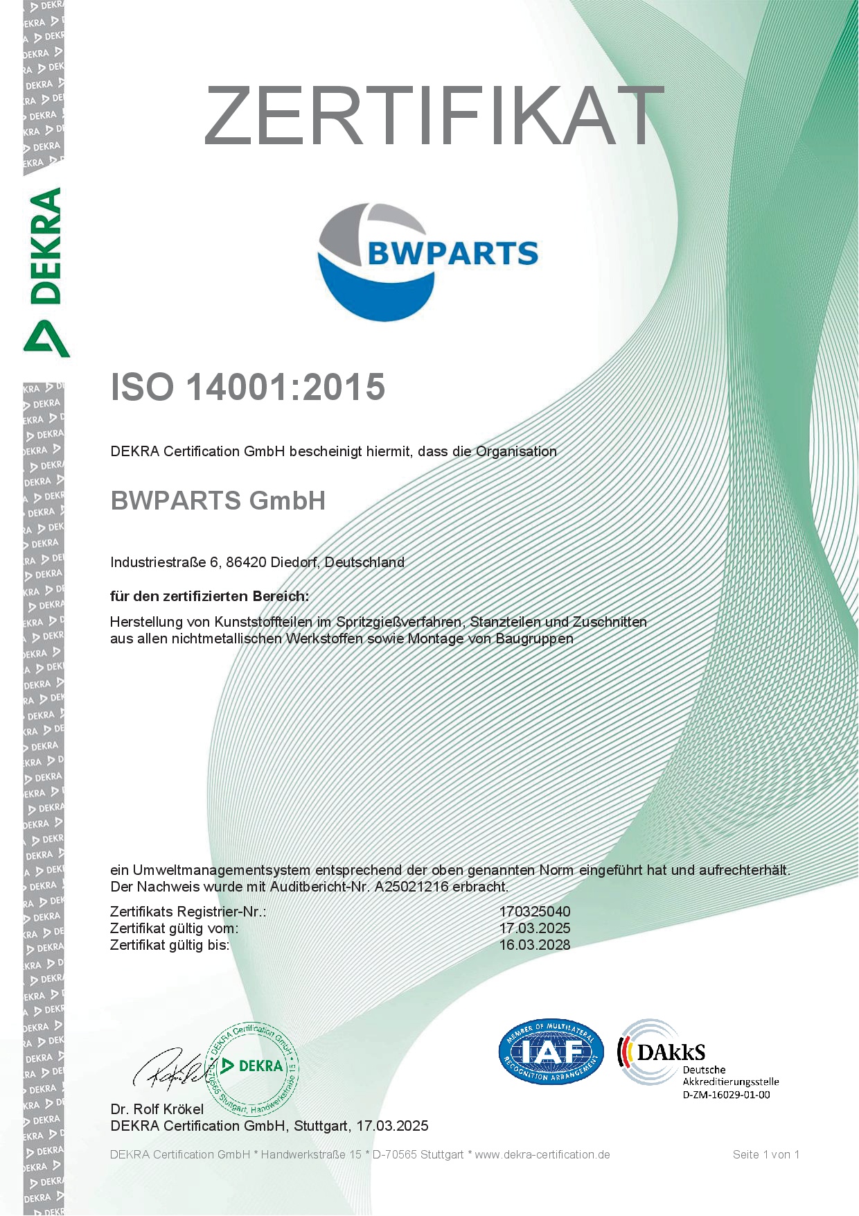 Die BWPARTS GmbH hat ein aktives Managementsystem im Einsatz welches die Bereiche Qualität, Umwelt, Energie, Sicherheit und Gesundheit bei der Arbeit und Informationssicherheit umfasst sowie neben unseren Mitarbeitern auch alle Zulieferanten zur aktiven Unterstützung und Erreichung unserer gemeinsamen Ziele darin berücksichtigt.